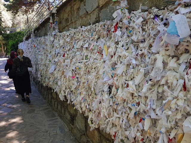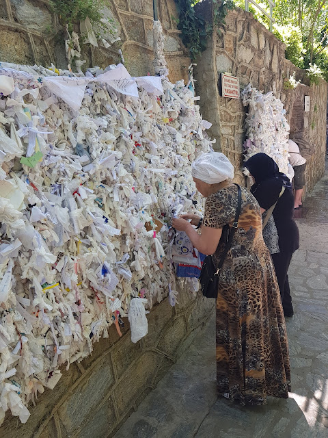 Cerca de la modesta capilla de piedras que fuera la última morada de la Virgen María hay una pared en donde los fieles depositan un papel con sus anhelos.